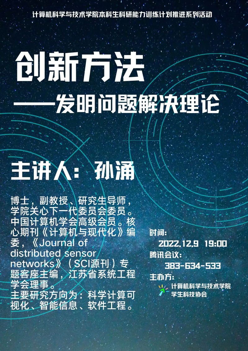 本科生科研能力训练计划推进系列活动:创新方法——发明问题解决理论