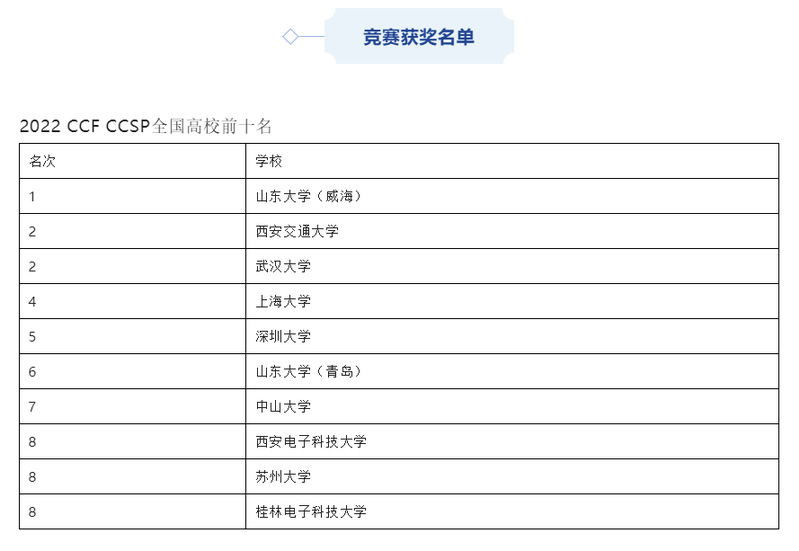CSP(Certified Software Professional)是中国计算机学会发起的计算机软件能力考试认证。主要评估大学生或者信息产业从业人员的软件开发能力。CCSP(Collegiate Computer System &Programming contest)是CSP的高分学生参与的计算机系统与程序设计竞赛,每年一次,和中国计算机大会同步进行。