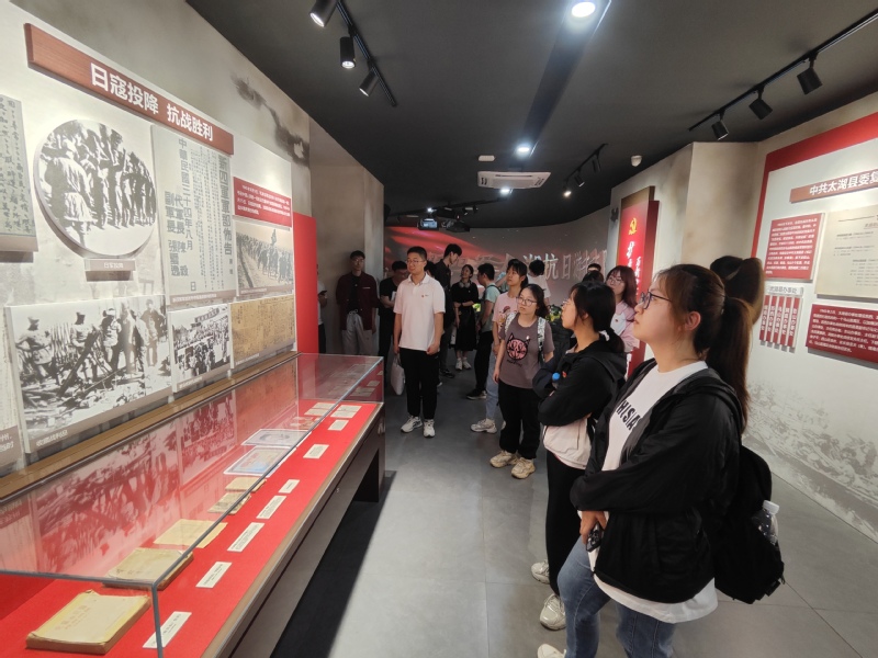 在纪念馆讲解员的带领下,党员们先后参观了新四军太湖游击支队纪念馆的“太湖阁”和“太湖县革命斗争事迹陈列馆”。新四军太湖游击队纪念馆位于苏州市吴中区光福镇冲山村北山,此地亦是当年太湖游击队“冲山突围”所在地,现为苏州市爱国主义教育示范基地、苏州市廉洁教育基地。“太湖阁”主要展示的是抗日战争时期太湖游击队的英勇事迹,馆内以展板、图片、文字、实物等形式,完整展现了新四军太湖抗日游击支队初建、重建、扩建时期的曲折历程。“太湖县革命斗争事迹陈列馆”主要展示的是1945年至1949年解放战争时期太湖游击队在当时太湖县的革命斗争事迹。