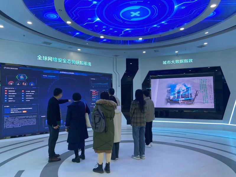 在360网络安全协同创新产业基地相关负责人的陪同下,大家依次参观了智能网联汽车安全研究中心、大数据协同安全技术应用研究中心、数字安全场景服务中心等展厅,深入了解了产业基地在保障支撑产业发展、城市运行、网络安全等方面创设的一系列国家级科学设施。