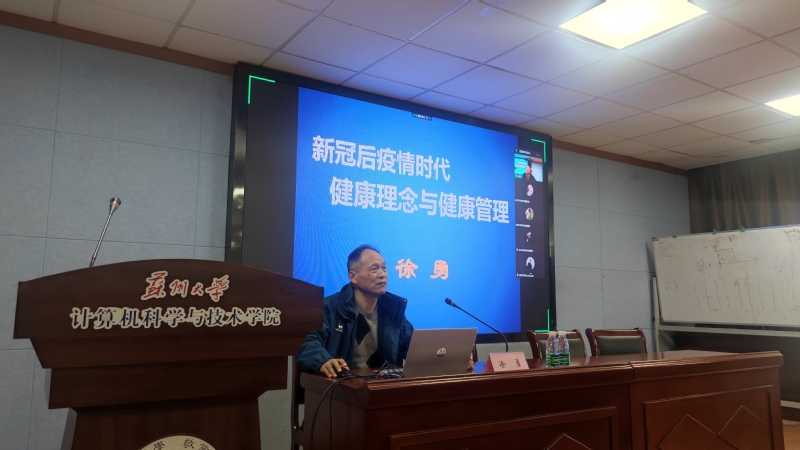 接下来,徐勇教授为同学们传授了健康理念与健康管理要点。结合计算机专业同学的生活习惯和健康现状,他动员我院学生在面对电脑学习工作时间更长的情况下,更要主动进行体育锻炼和自由活动。健康是一种责任、一种能力、一种素养。健康管理是每个人促进健康的正确选择。对如何做好健康管理,他给出了大量详细务实的建议。